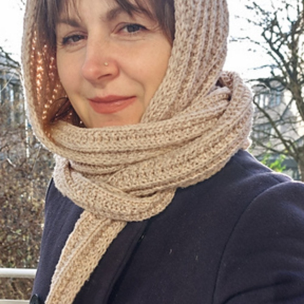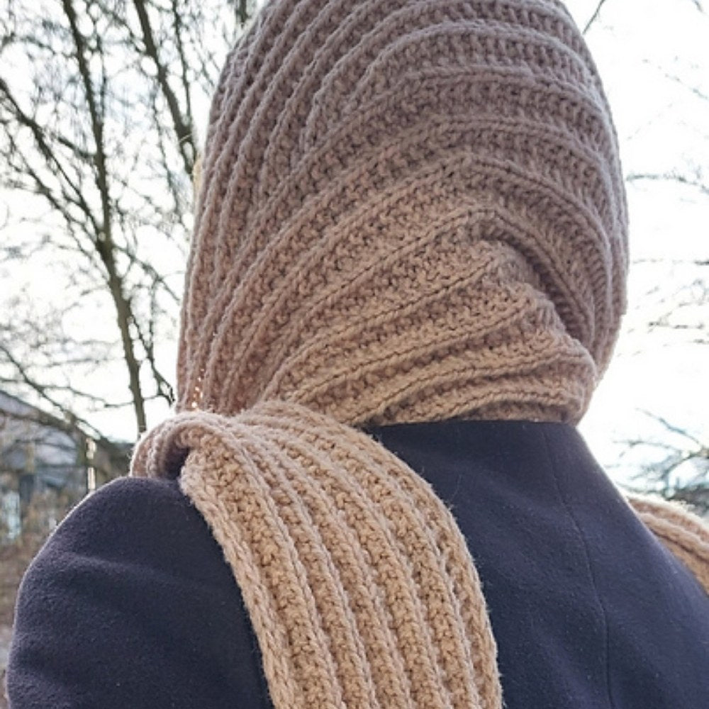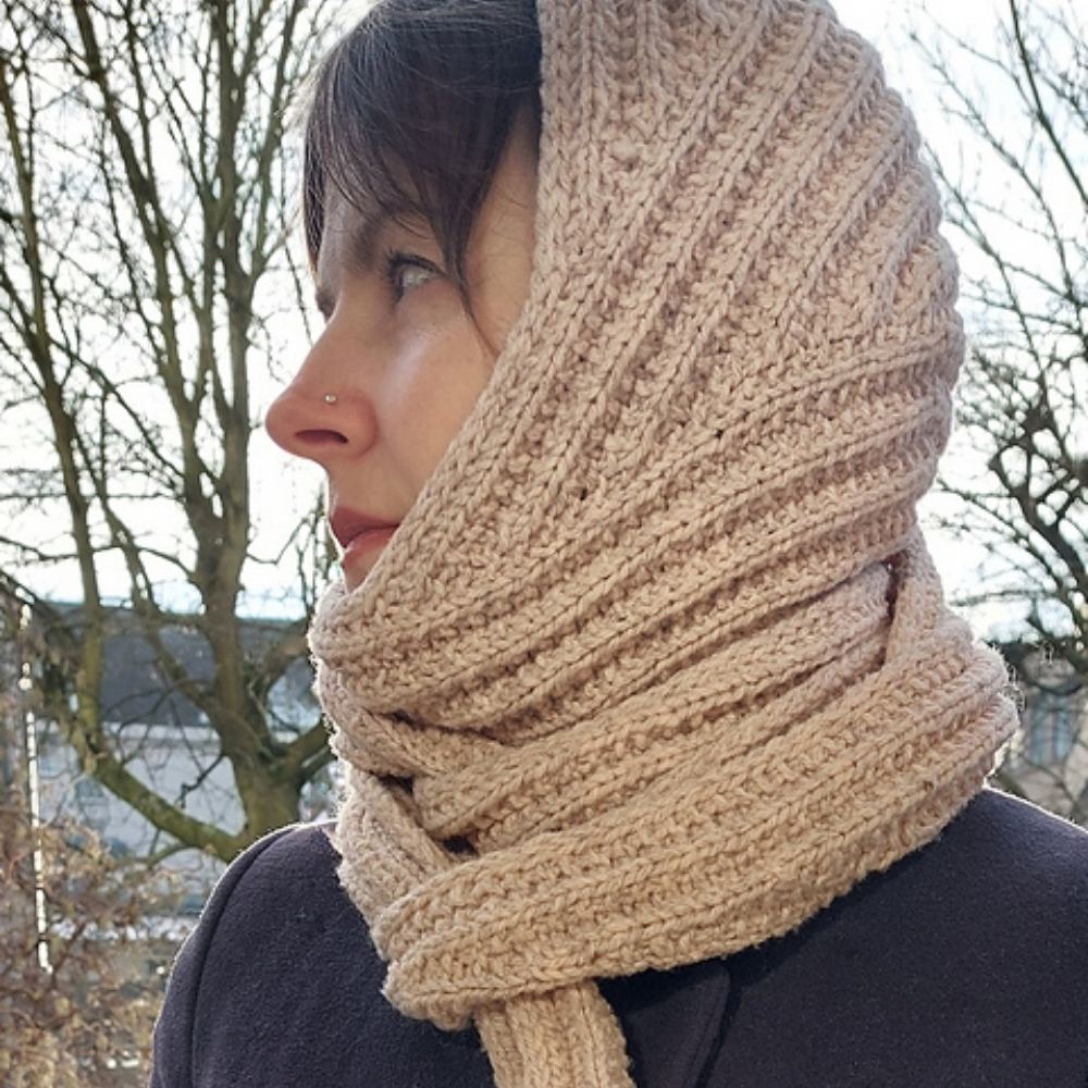 "Ein Kapuzenschal stand schon Ewigkeiten auf meiner Designliste. Nun, endlich, habe ich das Konzept mit meinem typischen Muster kombiniert, um dieses wunderschöne Accessoire zu kreieren – kuschelig, praktisch und stylisch zugleich."