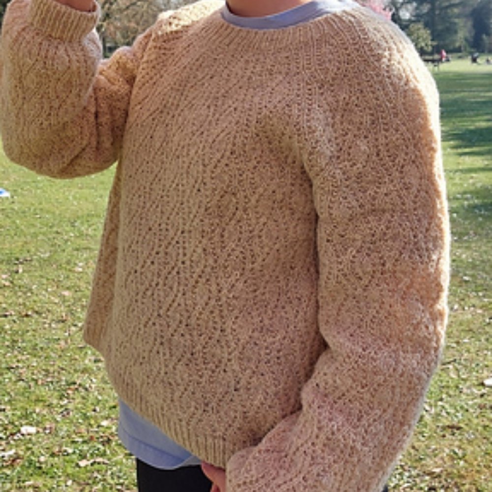 Beispiel-Pullover 1, Größe 2, wird auf den Fotos mit einem Brustumfang von 86 cm getragen (16 cm Mehrweite).