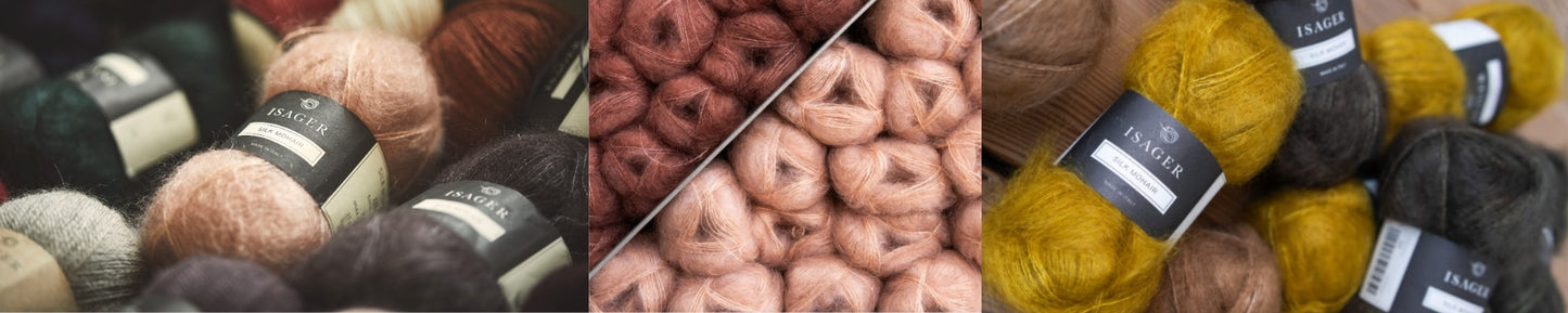 ISAGER SILK MOHAIR ist mit seiner Mischung aus 25% Seide und 75% Super-Kid-Mohair ein wunderschönes, weiches und glänzendes Garn mit einer leichten und flauschigen Struktur. Wir verwenden es hauptsächlich zusammen mit anderen Garnen, aber es ist auch einzeln verstrickt besonders schön – vor allem in schlichten Designs. Ein strukturiertes Muster kommt in diesem Garn nicht zur Geltung, es sei denn, das Silk Mohair wird mit einem anderen, glatteren Garn kombiniert. Da Silk Mohair weich und flauschig ist, muss sowohl beim Stricken als auch beim fertigen Projekt mit etwas Fusseln gerechnet werden. Das Fusseln lässt mit der Zeit nach, dennoch sollte man darauf achten, zu welchen Kleidungsstücken Silk Mohair getragen wird. Isager Silk Mohair ist von feinster Qualität mit langen Fasern, die das Fusseln reduzieren.
