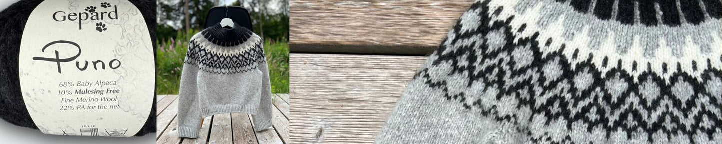 Puno von Gepard ist ein außergewöhnlich weiches Garn aus 68% Babyalpaka, 10% extrafeiner Merinowolle und 22% Polyamid. Durch ein innovatives Herstellungsverfahren werden die Naturfasern in ein zartes Netz eingeblasen – so entsteht ein voluminöses, aber federleichtes Garn, das sich angenehm auf der Haut anfühlt und dennoch Formstabilität bewahrt.